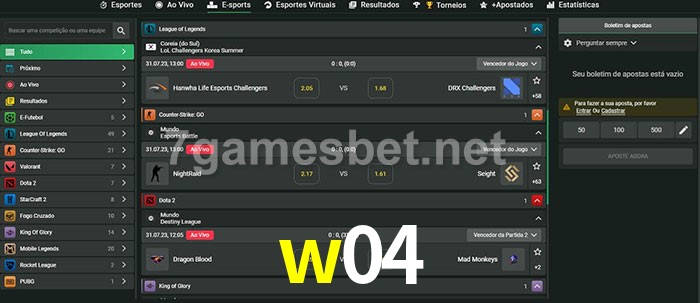 O w04 oferece uma grande seleção de opções de apostas em e-sports com probabilidades competitivas
